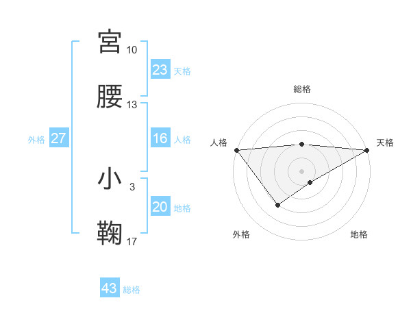 宮腰 小鞠さんを姓名の画数から五運を鑑定