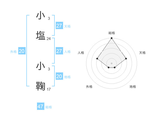 小塩 小鞠さんの総格は47画の5点!