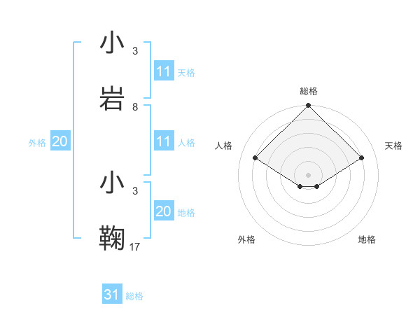 小岩 小鞠さんを姓名の画数から五運を鑑定