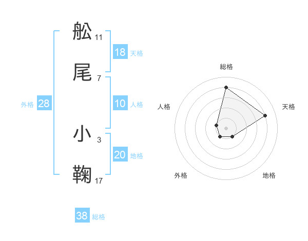舩尾 小鞠さんの総格は38画の4点!