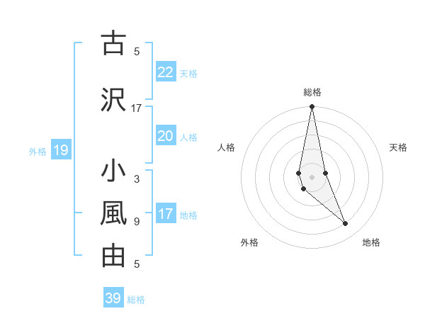 古沢 小風由さんを姓名の画数から五運を鑑定