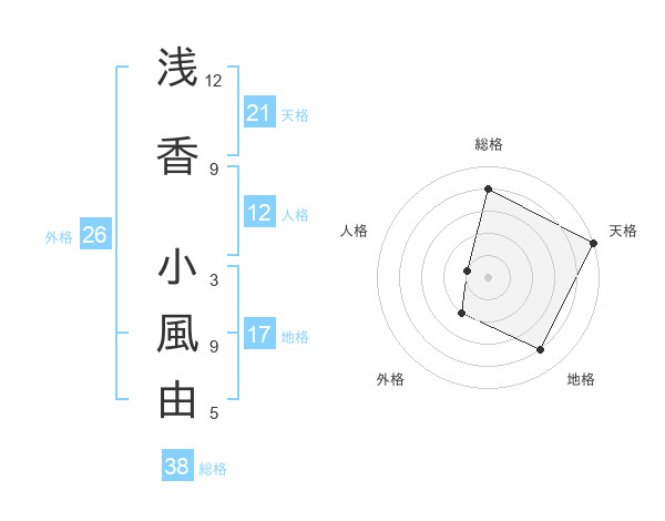 浅香 小風由さんを姓名の画数から五運を鑑定