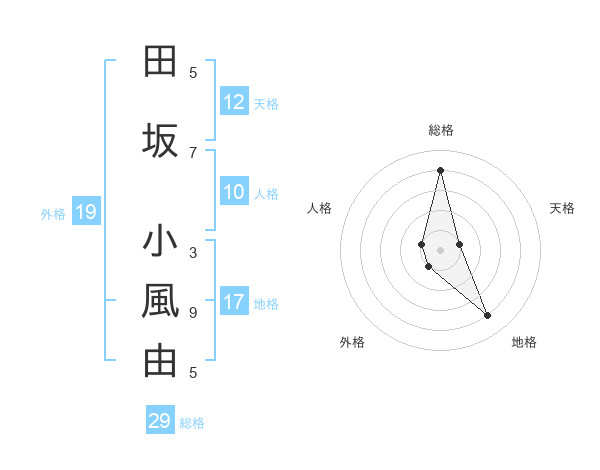 田坂 小風由さんを姓名の画数から五運を鑑定