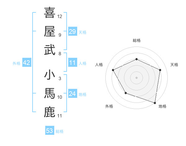 喜屋武 小馬鹿さんの総格は53画の3点!