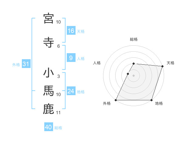 宮寺 小馬鹿さんを姓名の画数から五運を鑑定
