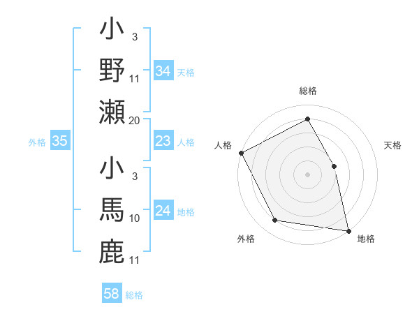 小野瀬 小馬鹿さんの外格は35画の4点!