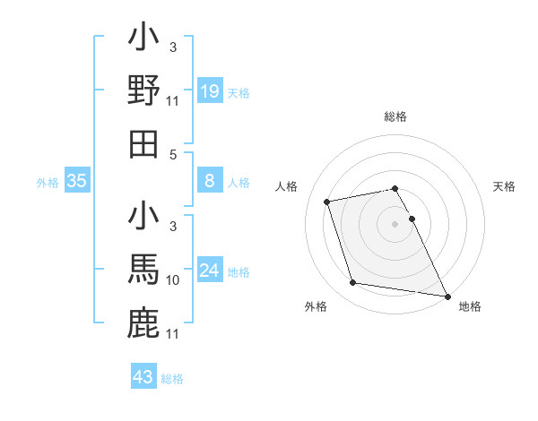 小野田 小馬鹿さんの総格は43画の2点!