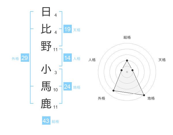 日比野 小馬鹿さんの総格は43画の2点!