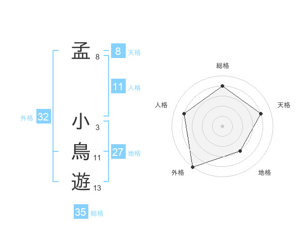 孟 小鳥遊さんを姓名の画数から五運を鑑定