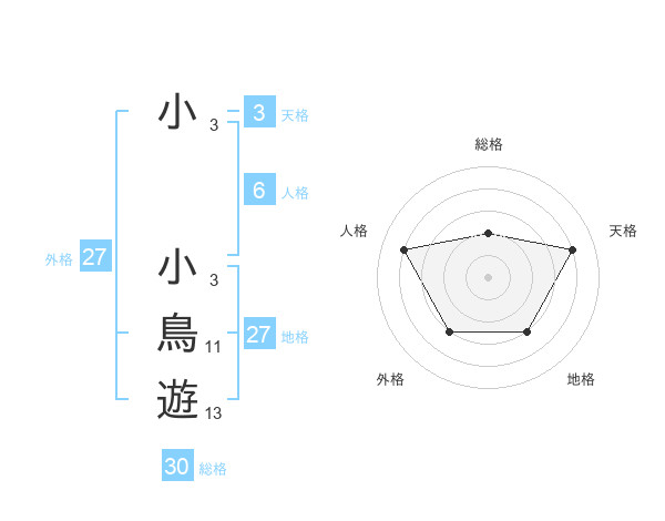 小 小鳥遊さんの地格は27画の3点!