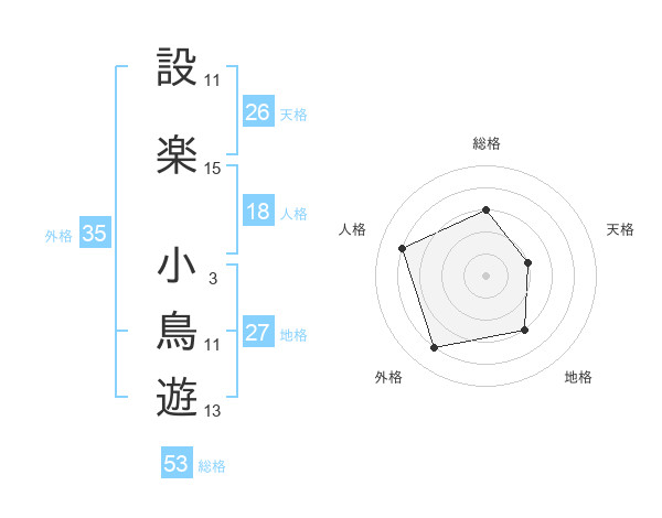 設楽 小鳥遊さんを姓名の画数から五運を鑑定