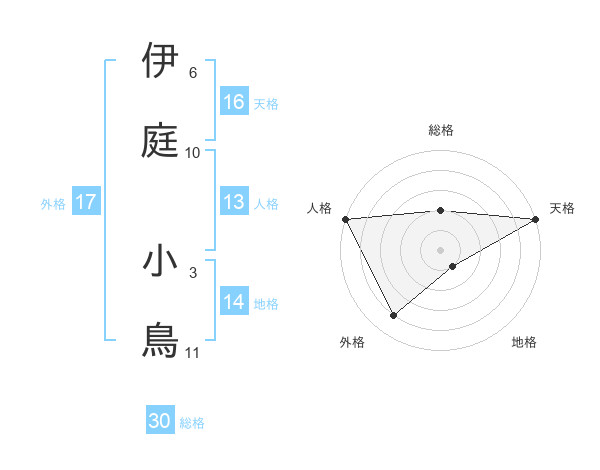 伊庭 小鳥さんを姓名の画数から五運を鑑定