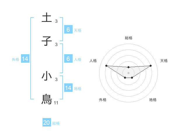 土子 小鳥さんを姓名の画数から五運を鑑定