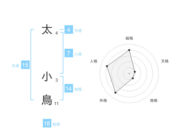太 小鳥さんの総格は18画の4点!