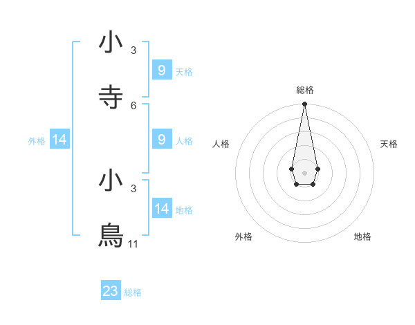 小寺 小鳥さんを姓名の画数から五運を鑑定