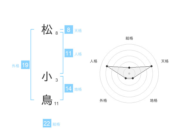 松 小鳥さんの総格は22画の1点!