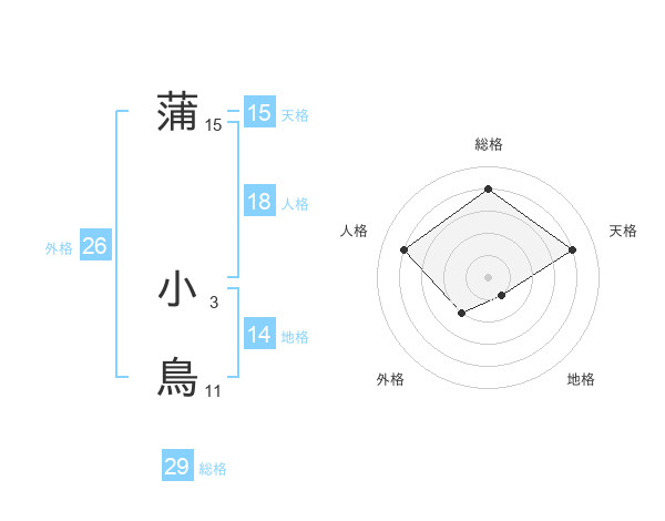 蒲 小鳥さんの総格は29画の4点!
