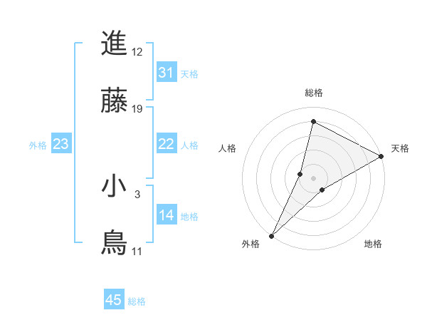 進藤 小鳥さんを姓名の画数から五運を鑑定