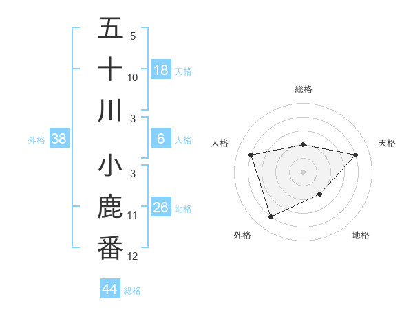 五十川 小鹿番さんを姓名の画数から五運を鑑定