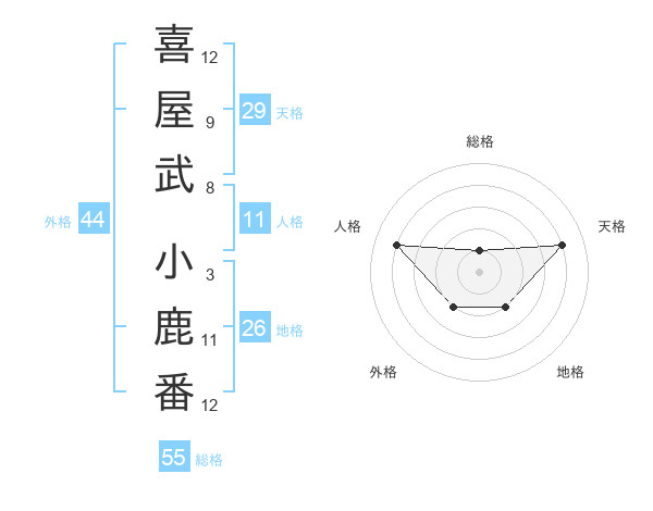 喜屋武 小鹿番さんの外格は44画の2点!