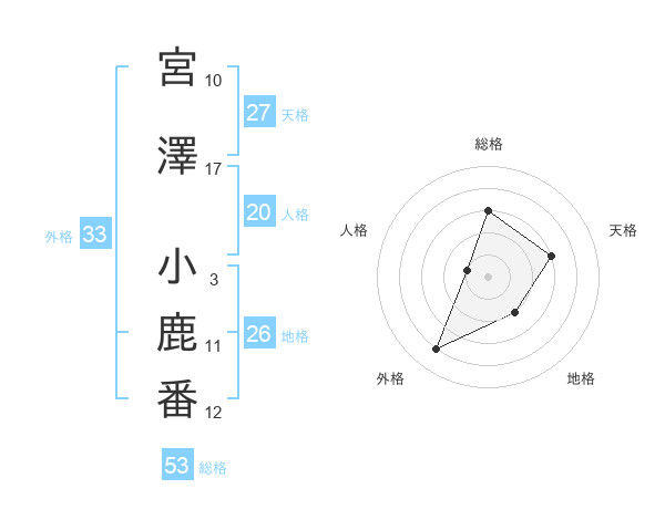 宮澤 小鹿番さんの総格は53画の3点!