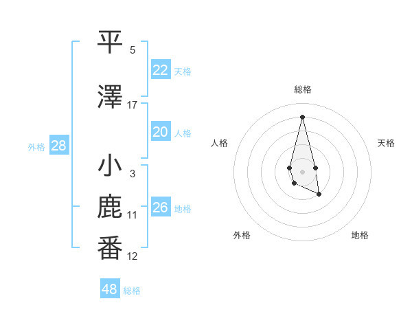 平澤 小鹿番さんを姓名の画数から五運を鑑定