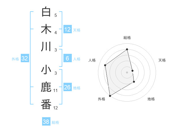 白木川 小鹿番さんの総格は38画の4点!