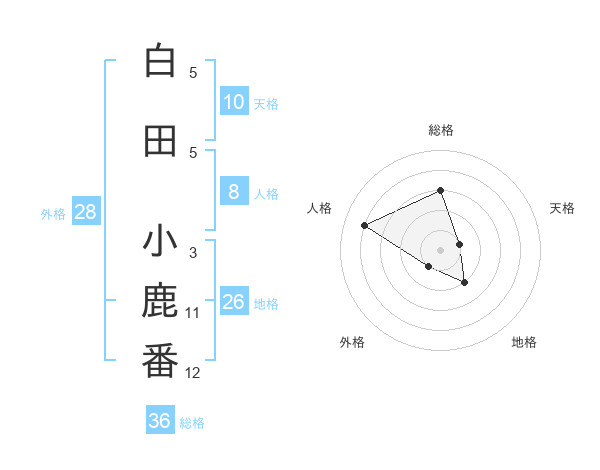 白田 小鹿番さんを姓名の画数から五運を鑑定