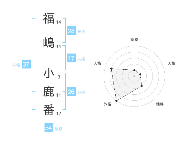 福嶋 小鹿番さんの外格は37画の5点!