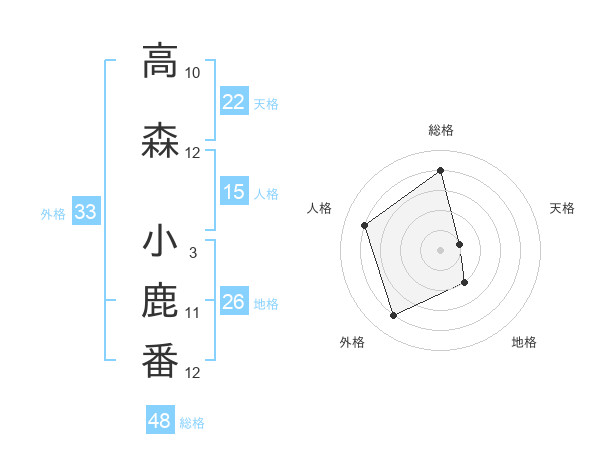 高森 小鹿番さんの総格は48画の4点!