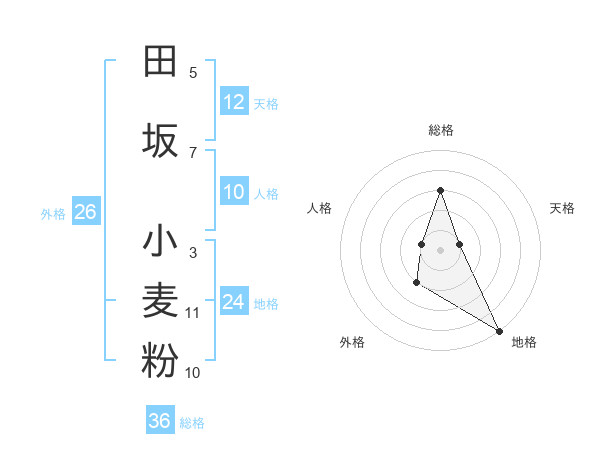 田坂 小麦粉さんを姓名の画数から五運を鑑定