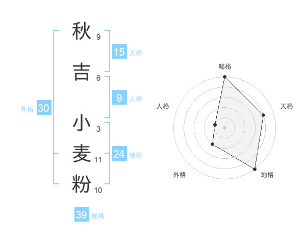 秋吉 小麦粉さんを姓名の画数から五運を鑑定