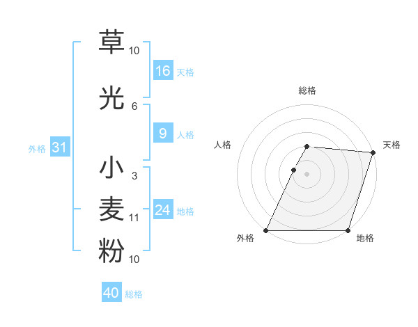草光 小麦粉さんの外格は31画の5点!