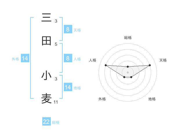 三田 小麦さんの総格は22画の1点!