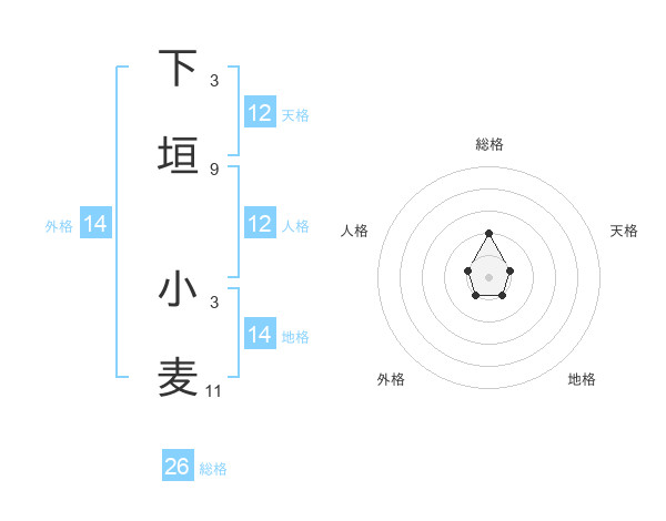 下垣 小麦さんを姓名の画数から五運を鑑定