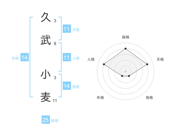 久武 小麦さんの総格は25画の4点!
