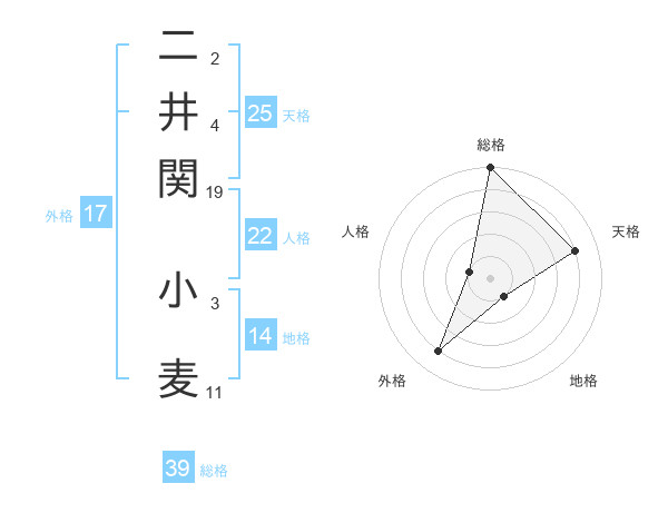 二井関 小麦さんの総格は39画の5点!