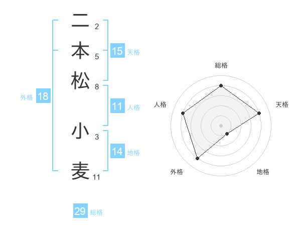 二本松 小麦さんの総格は29画の4点!