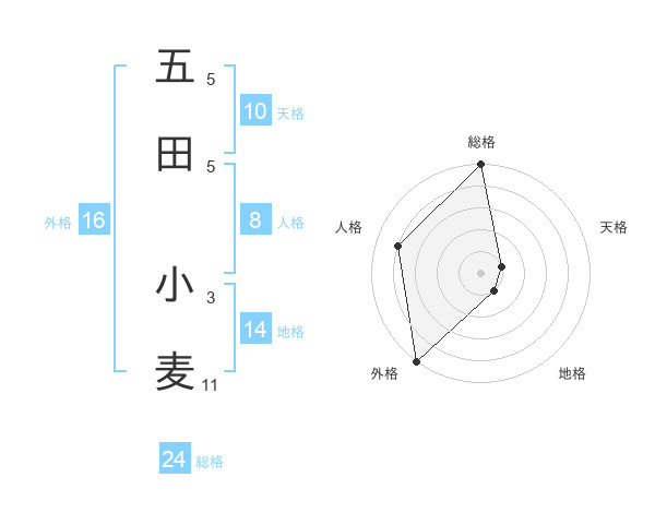 五田 小麦さんの総格は24画の5点!