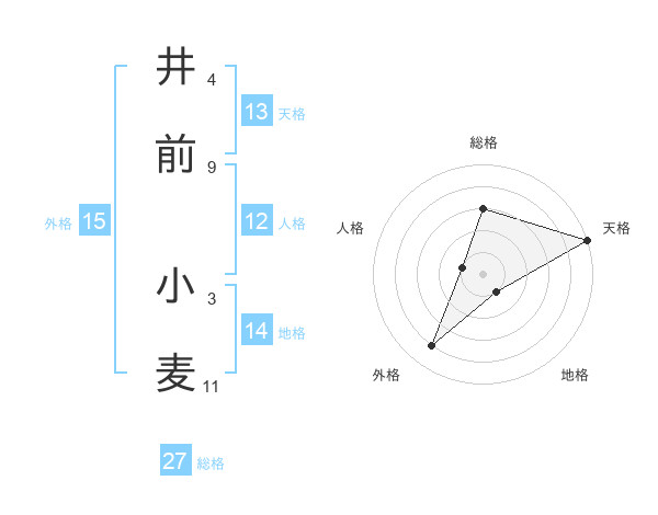 家系が持つ宿命的な運勢を表します。祖先から受け継いだ苗字ですので自分の力が及びません。家柄を象徴します。