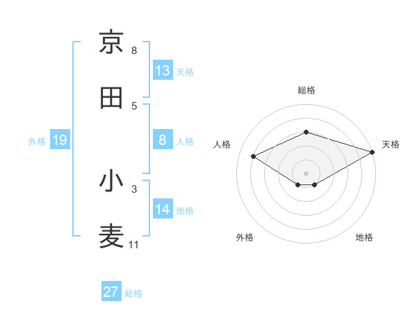 京田 小麦さんの総格は27画の3点!