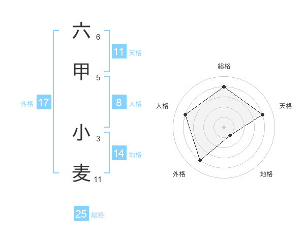 六甲 小麦さんの天格は11画の4点!