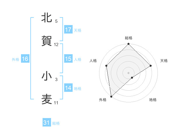 北賀 小麦さんを姓名の画数から五運を鑑定