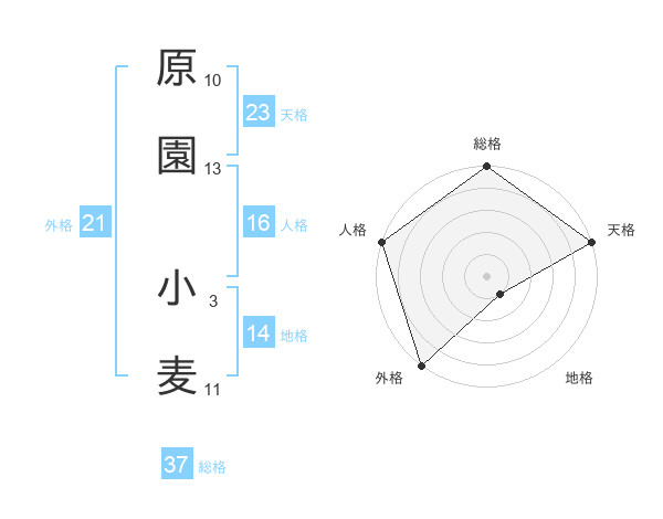 原園 小麦さんの天格は23画の5点!