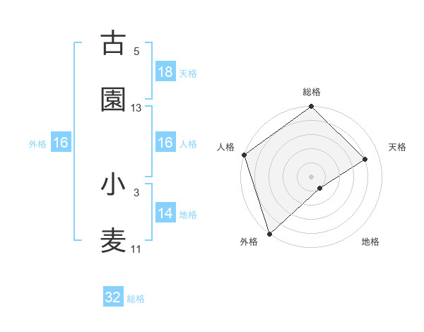 古園 小麦さんの天格は18画の4点!