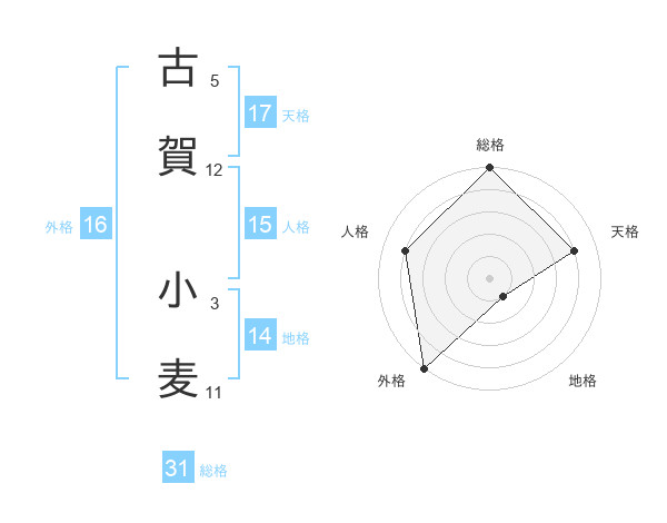 古賀 小麦さんの天格は17画の4点!