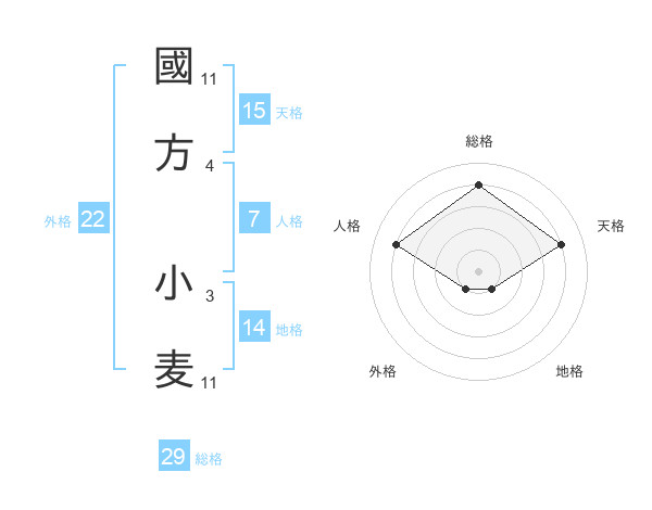 國方 小麦さんの総格は29画の4点!