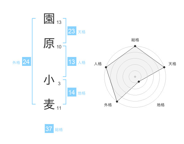 園原 小麦さんの総格は37画の5点!