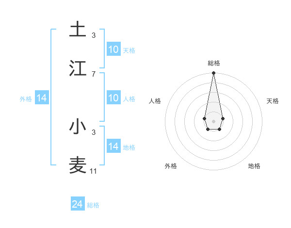 土江 小麦さんの総格は24画の5点!