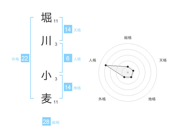 堀川 小麦さんの総格は28画の1点!